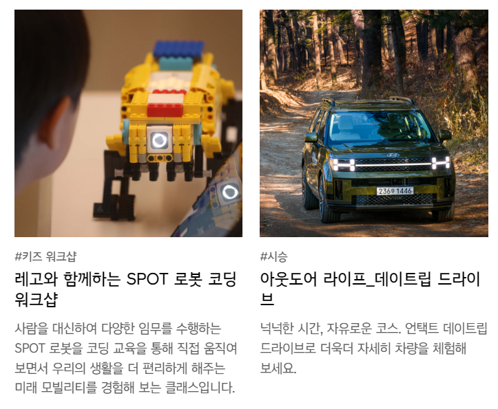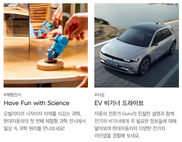 -모빌리티 : 친환경, 자율주행, UAM, 드론, 우주여행 등 다양한 모빌리티를 이해할 수 있는 공간입니다.